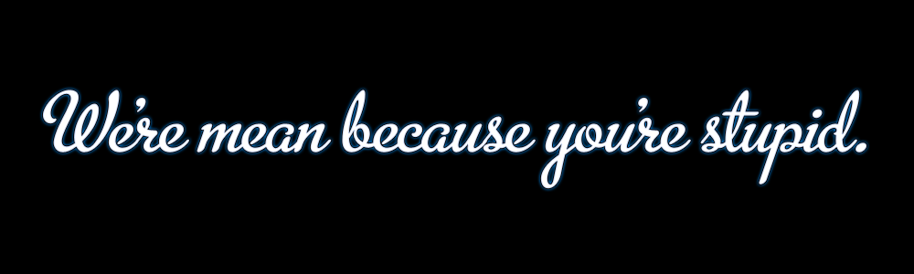 If you want to call, we would love to hear from you! 612.293.7413 or email us at weremeanbecauseyourestupid(at)gmail(dot)com